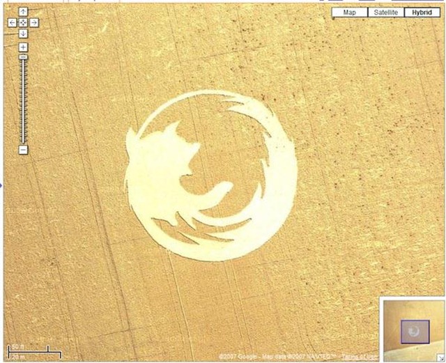 Representing the logo of one of Google's major web browser rivals, the Firefox crop circle appeared in an Oregon cornfield in 2006. It was created by the Oregon State University Linux Users group to cover an area of over 45,000 square feet. As a celebration of Firefox's 50 millionth download - and a spot of free advertising on Google Maps - it was hard to top. Sly like only a fox could be.