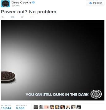 Do you remember Oreo's tweet during the Super Bowl XLVII blackout? It was relevant, timely and made people laugh. This post was retweeted more than 16, 000 times and Oreo gained followers because it was memorable.
