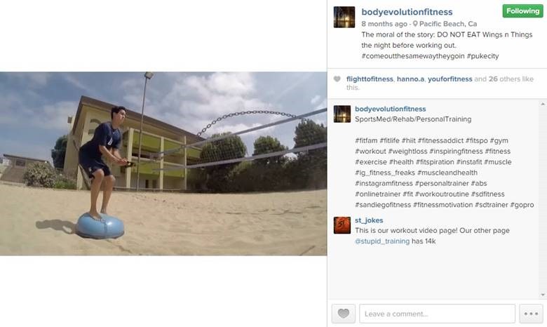 Here is a screenshot of an Instagram video that was shot in wide format to fit in not only the person exercising but the rest of the fitness equipment they're using during a workout.