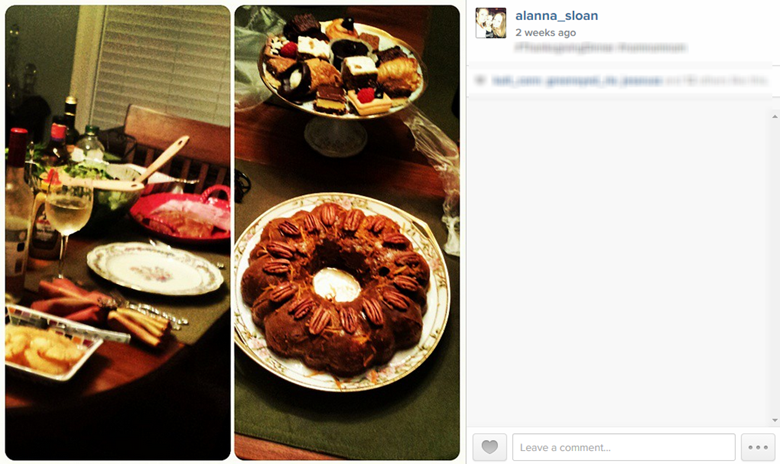 Here, I chose to frame a holiday dinner. Instead of uploading two separate photos, I decided to frame two images (dinner and dessert) into one upload. This can help with not overloading your audience's feeds with photos. Using a framing app gets the message out that you intended in a more efficient way.