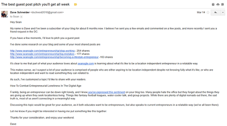Here's a pitch I used to secure a spot on Sean Ogle's business blog.