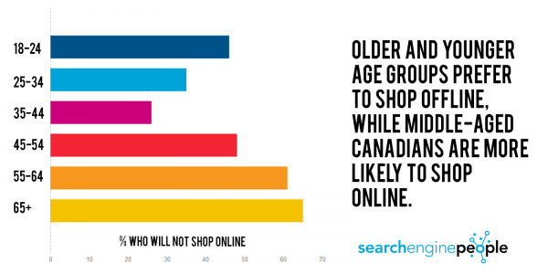• One of the most notable results relates to the age of shoppers and their willingness to shop online. We found that older and younger age groups prefer to do their holiday shopping offline, while [tweetable]middle-aged Canadians are more likely to shop online[/tweetable].