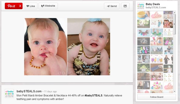 BabySteals.com, for example, use Pinterest to promote their deals and this site typically targets mommies a.k.a. female buyers.