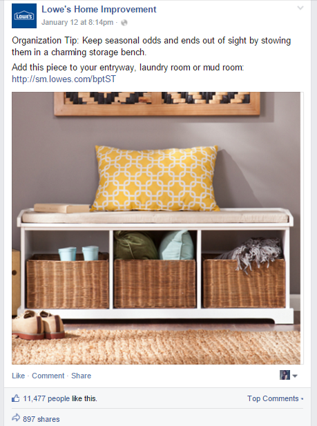 In fact, the ideas and tips provided by Lowes are not just limited to text posts and images; instead, it also posts short videos on a regular basis comprising of helpful ideas and tips. This is again a very smart move as uploading videos on Facebook will help you get more organic reach compared to other type of posts.