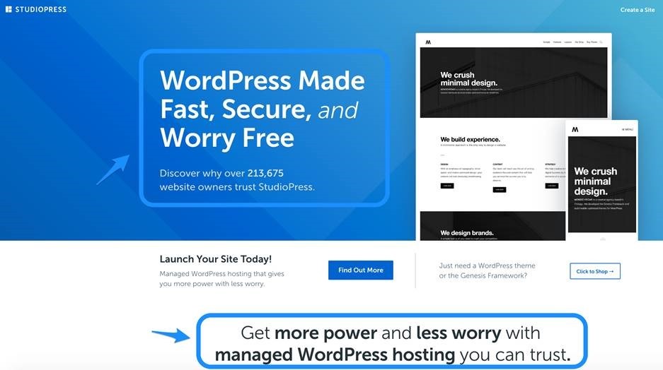 While there are many web hosting companies around, StudioPress is specifically focused on WordPress hosting. In their WordPress hosting package, you get awesome responsive designs, rock solid security, award-winning performance, advanced SEO, hassle free setup and more.