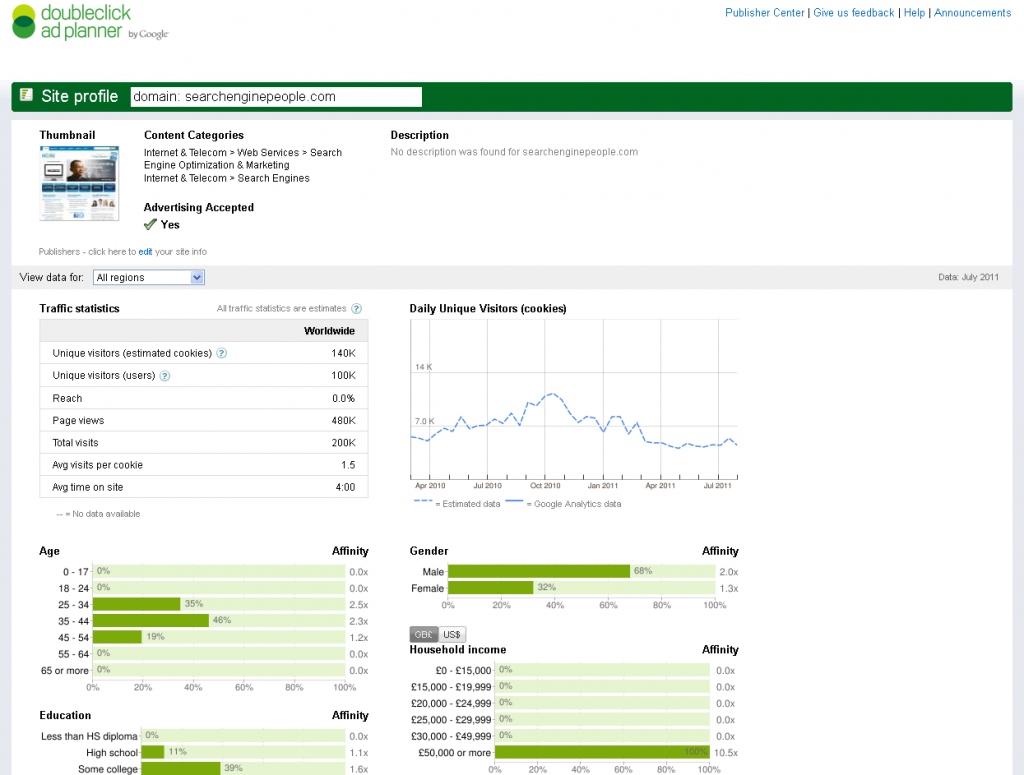 This Google tool gives wealth of invaluable information like traffic estimates and audience data.