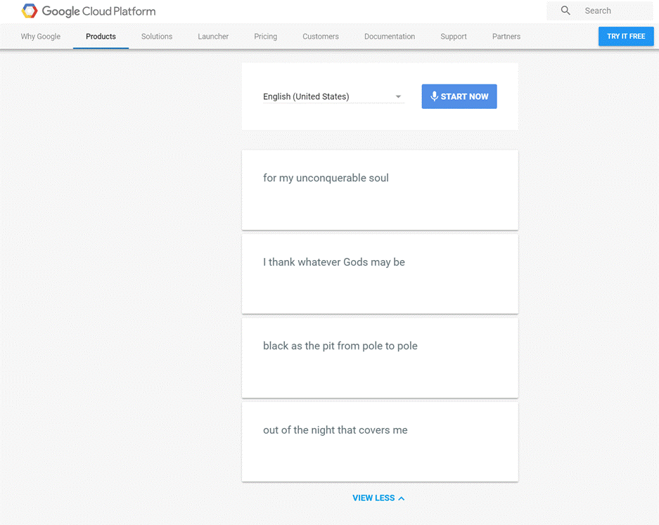 One of the most powerful free speech recognition APIs is Google’s Cloud Speech API, which recognizes over 110 languages and has a lot of advanced features.
