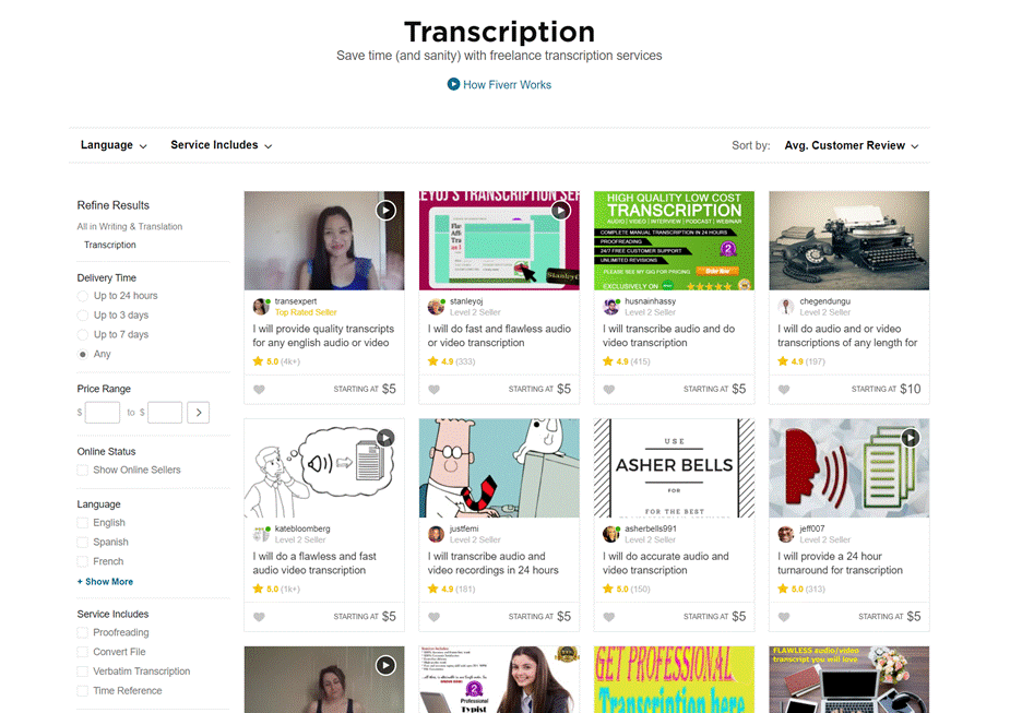 You can also opt to hire a freelance transcriptionist in online job platforms such as Upwork and Fiverr. Transcription services on these platforms can range between $5 to $30 for a 10- to 60-minute audio project.