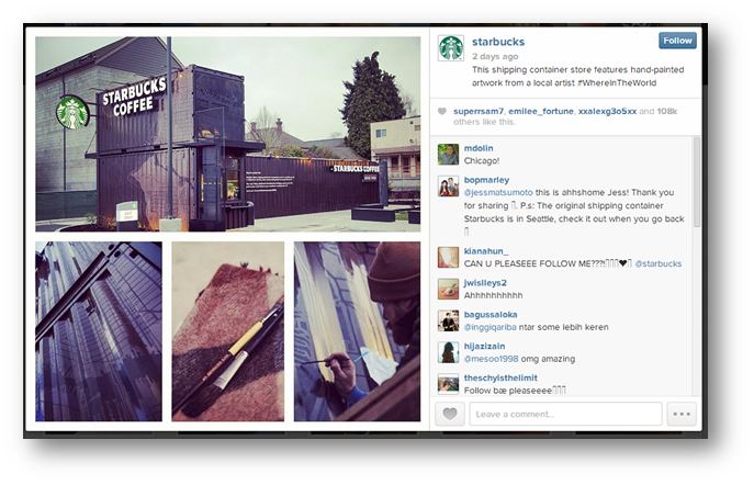 Another great example is Starbucks. They have got a massive following of more than 2,300,000 followers!