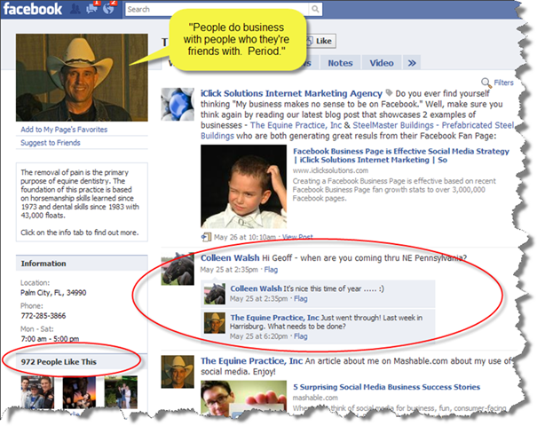 Horse Dentist Dr. Geoff Tucker showed us the power of Facebook in connecting smaller businesses with their customers on a more personal level. He generated over 100 leads and now has over 4,000 friends.
