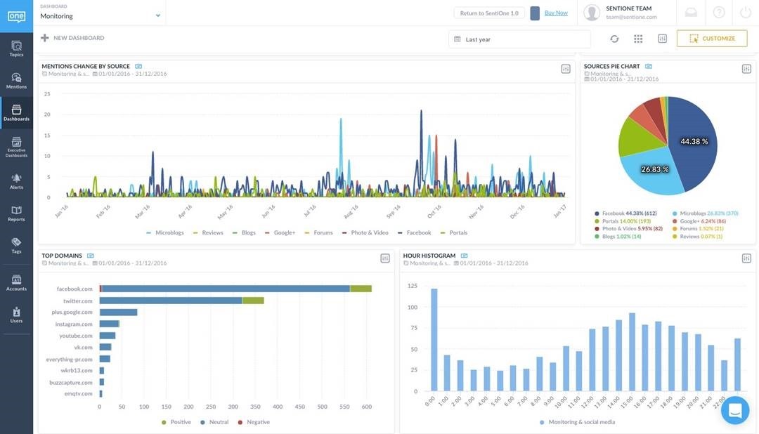 Monitor websites, blogs and forums and make sure you read what people have to say about your brand, products, and services. One way to do that is to use the tool like Sentione, that monitors online discussions on your brand. Another way to go is Google Alerts. It is relatively simple to set up a few notifications in Google Alerts that will warn you via email when search results are updated. You can configure the system to alert you immediately of new conversations, blog posts and news articles about your brand.