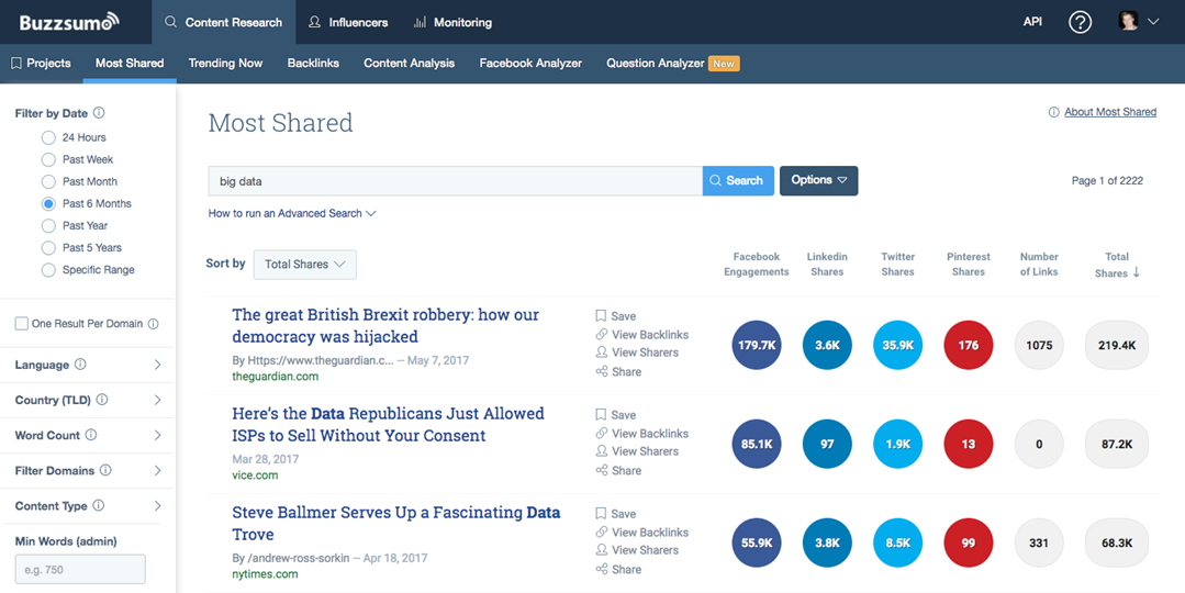 Keep an eye on branded searches to see if the general awareness of your brand is changing. If people are searching for your brand specifically, your marketing efforts are succeeding. You can use Google Adwords and the Google Keyword Planner tool to see how many people are searching for your brand online. You can also get many more details from these tools, such as geographical information. An alternative to Google’s software, can be a tool that can also help looking for keywords and provide other SEO and content marketing insights is Buzzsumo.