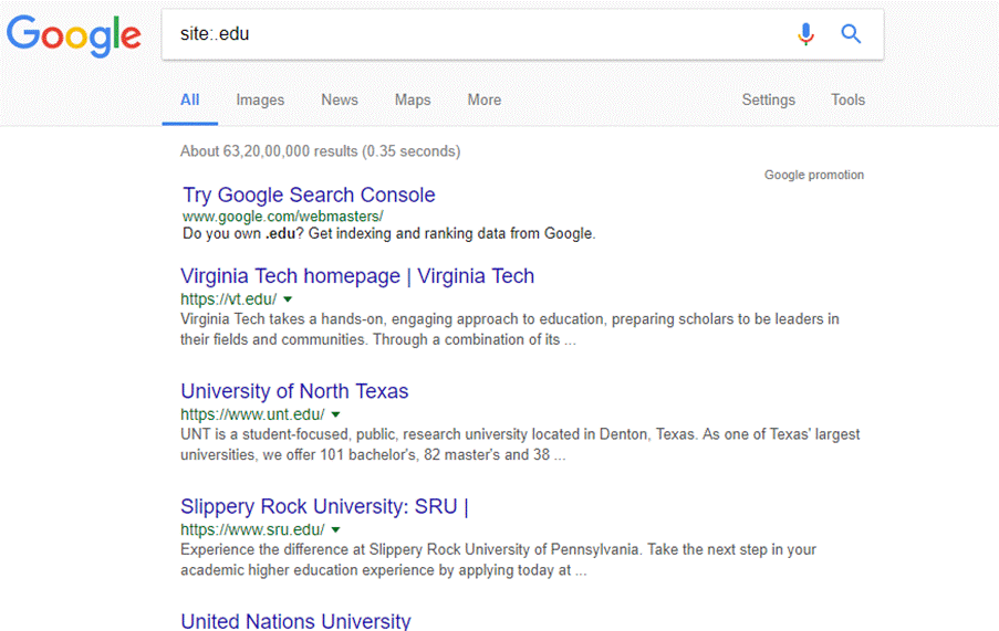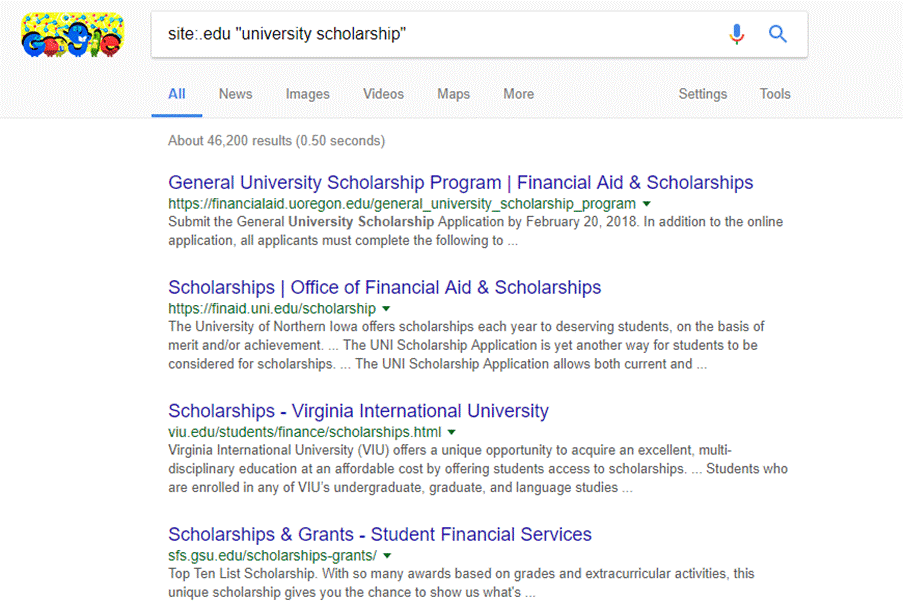 To give an example, we will type “site.edu: “university scholarship”” in Google
