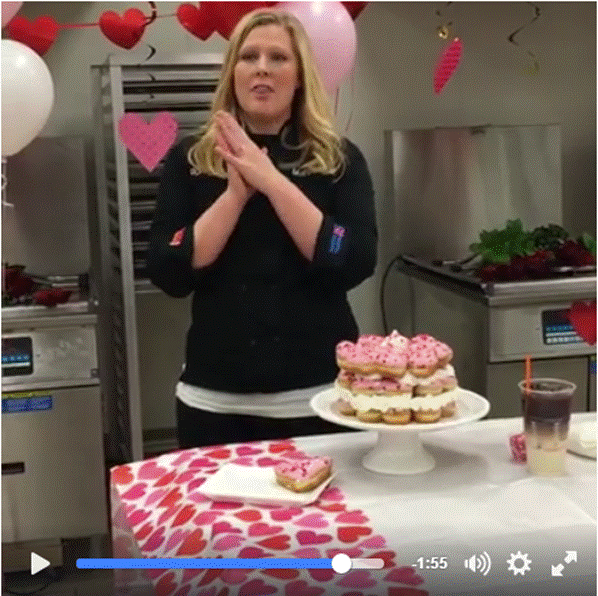Dunkin Donuts’ Valentine day live streaming is another great example. In this video, Dunkin’ explored ”test kitchen” for viewers, showing how it creates new products.