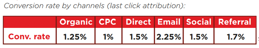 One of the surprising findings for us is the fact that referral traffic demonstrates the second highest conversion rate on the market under the study. Meanwhile, many ecommerce websites focus on increasing organic and direct traffic and, thus, invest in SEO and activities designed to increase brand awareness.