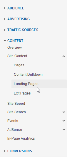 - In Google Analytics, go to the Content -> Landing Pages. Export top 10 landing pages in CSV (not "CSV for Excel")