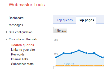 - In Webmaster Tools, go to Your site on the web -> Search queries -> Top Pages. Export the data as CSV. Make sure that the report dates are the same as your analytics data export.
