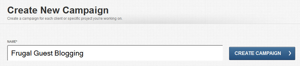 2. Create a campaign for your site (or client site). For this example we will pretend that we are trying to build links for our new site that looks at ways you can save money.