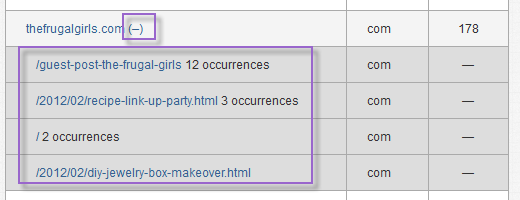 You can investigate further by clicking on the number to the right of the domain. This shows the URL paths that you might want to investigate for guest posting opportunities.