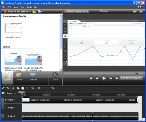 Using Camtasia, once you decide on the resolution that your video will have, you can activate the Record the screen feature. This will highlight the exact area on your desktop that will be recorded.