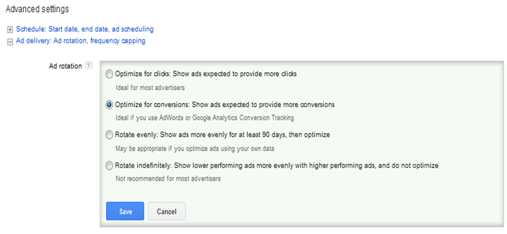 2012 brought changes to how AdWords Ad Rotation works. You can now choose from the following on your Campaign Settings page.