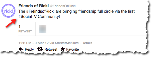 See how @FriendsofRicki uses their own hashtag and one they are hoping to bring forward in their industry - noted with the red arrow.