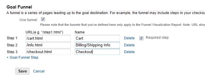 If you're interested in seeing how users interact with your funnel process before they convert, you can set up funnel tracking for your Goals as well.