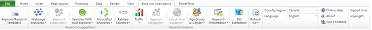 The Bing Ads Intelligence tool is a research tool that allows you to build and expand on your keyword list, gather research on keywords, and help generate potential traffic for those keywords through an Excel interface. Its an extremely powerful tool that allows you to peer into how keywords perform in Canada, United States France, UK, India and Germany.