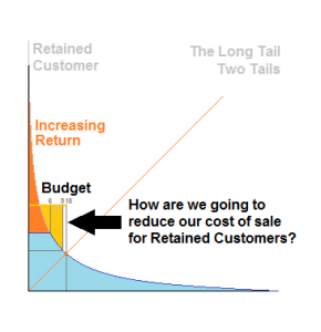 The distance from the vertical axis and the line dividing the head from the tail can be thought of as 100%, so drawing the cost savings percent vertically will intersect the curve. Where the cost savings percent intersects the curve, a line can be drawn horizontally. That horizontal line would represent the budget.