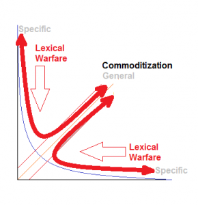 Words commoditize as we engage in lexical warfare with our competitors. We turn their differentiation into mud, and turn mud our differentiation. It's raining on the lexical battlefield.
