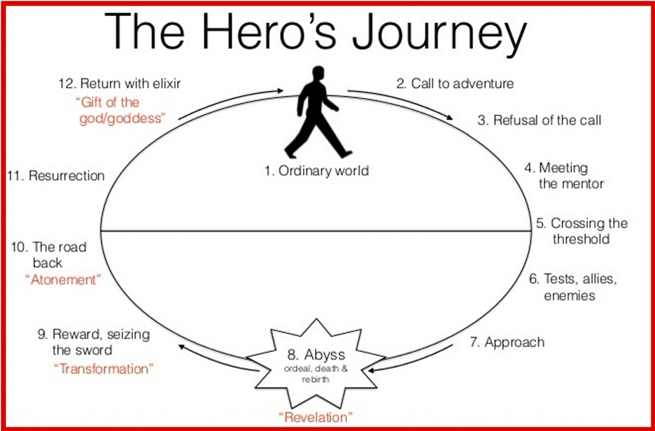 ● Apply the hero’s journey techniques that comprises of 12 steps as explained in the figure below.