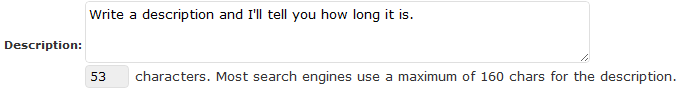 For example, the incredibly helpful All-in-One SEO Pack plugin for WordPress has a character counter under the meta description field so you can see how long your description is, with the explanation, "Most search engines use a maximum of 160 chars for the description." SEOMoz also recommends using 150-160 characters in the description so it won't truncate.