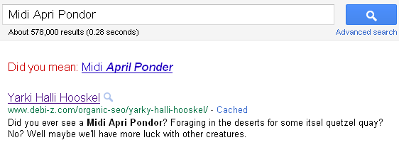 Step 1: I created a page on our site with a nonsense title and quite a few nonsense words in the text.