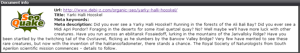 Step 2: I gave it a really long description, with a good number of nonsense words that weren't in the text of the page.