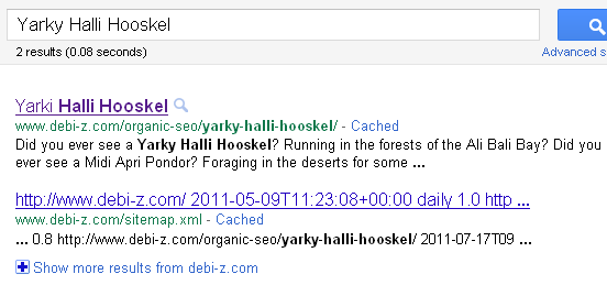 I searched for some of the keywords in the description. Trying the "main keyword" of our page - "Yarky Halli Hooskel" gave me: