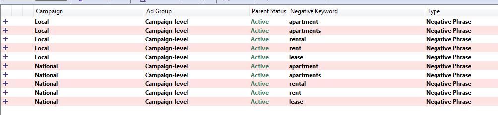 Once you click on the Add As Negative Keyword button, youll see the following: