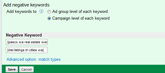 In the small business context, its likely that youll want to negate the keyword at the campaign level since any irrelevant keyword will always be irrelevant. Do this on a regular basis and youll greatly decrease the percentage of irrelevant queries that you are paying for.