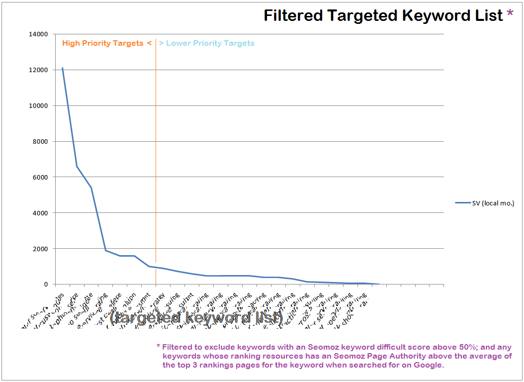 The answer? No - just to intentionally include other keywords alongside or immediately after my primary target; but to nevertheless focus on a wider set. You see, my belief system held thanks to crafty self-deception! Nevertheless, this expansion from one to many helped me to learn one essential truth: a larger target is almost always more accessible than a smaller target.