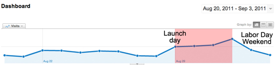 Despite this slow start, traffic to ZippyCart.com increased and stayed up when compared to weeks prior (Lesson 2: dont launch a campaign before a 3 day weekend):