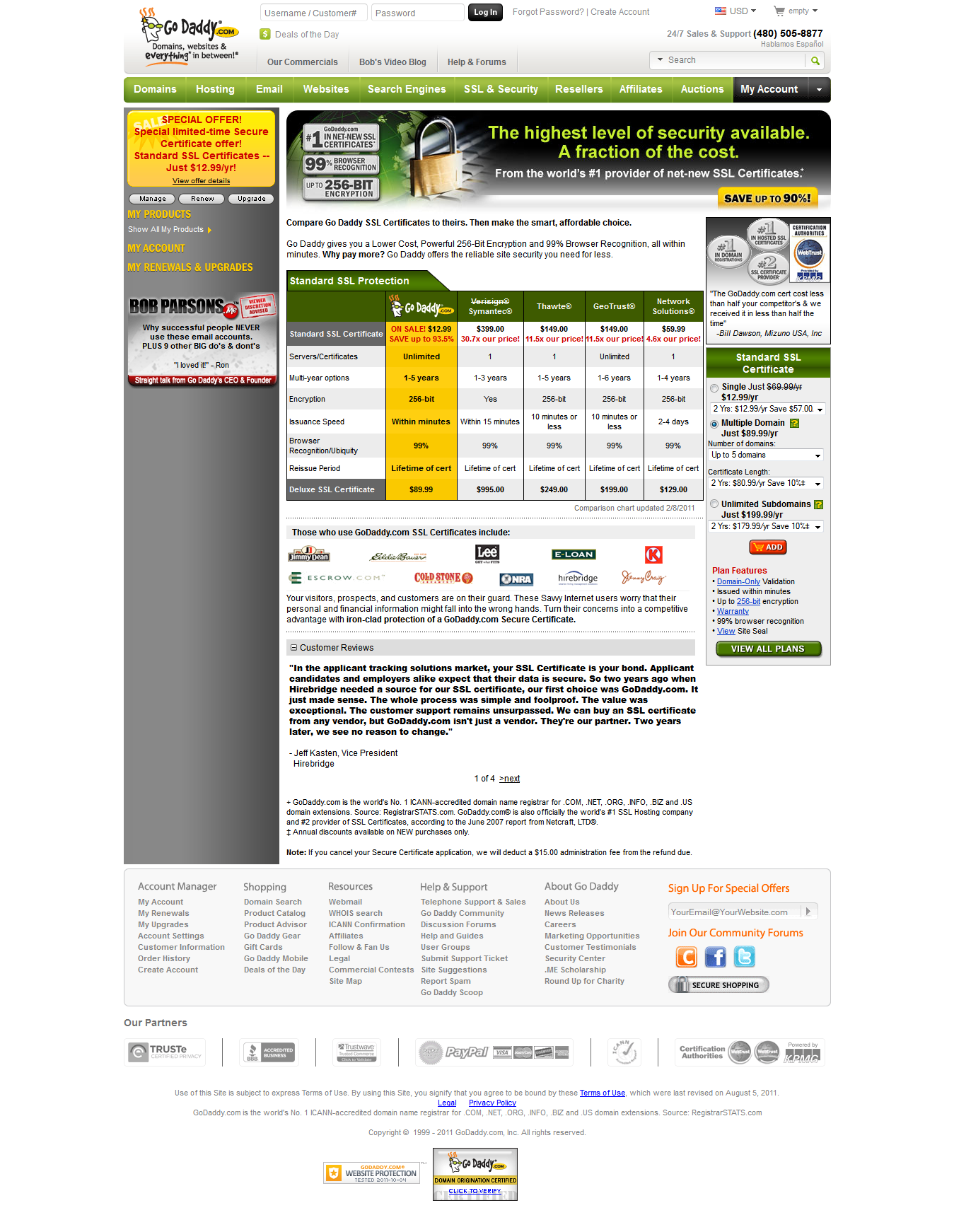 The original search term was "SSL certificate" and I clicked their ad because it mentioned a very attractive $12.99 price point. While the landing page does a good job of featuring the offer by highlighting it in yellow (continuity) you'll notice several other offers. However, I would recommend you ask yourself "Is the potential benefit of multiple offers greater than the potential loss of conversion on my primary goal?" - Clarity - Dr. Flint McGlaughlin of MarketingExperiments.com is famous for saying "Clarity trumps persuasion." The ultimate judgement of clarity is the user's thought process. Do they immediately know what you're offering and how your offering is superior to all other offers in the space? If not, then even continuity and simplicity aren't going to save you.