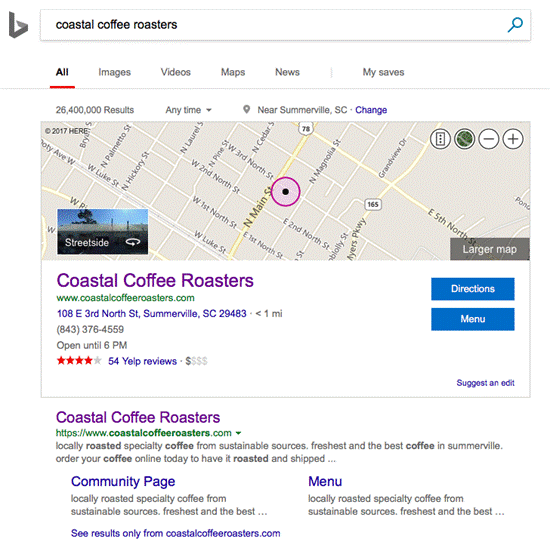 It seems that Bing is the small business champ, as it tends to list more local businesses on their SERPs. Google tends to favor the bigger, more established businesses, probably because their algorithms view them as more “credible” search results.