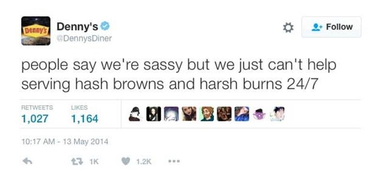 Create a list of these characteristics and see how you can tie them into your brand voice through the content you generate. For example, Denny’s restaurant has fully embraced a humorous and “pun-ny” personality through their social media posts.