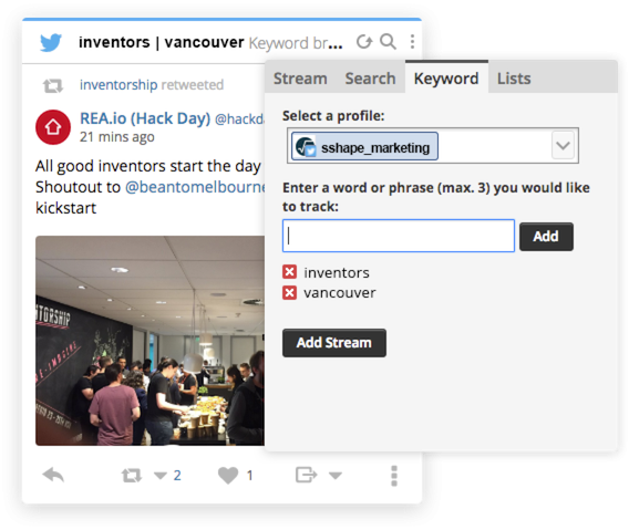 This will help you get into the minds of your customers and create content that speaks directly to them. To help you start out, explore Hootsuite’s social monitoring function, which enables you to keep tabs on certain keywords or brands related to your niche.