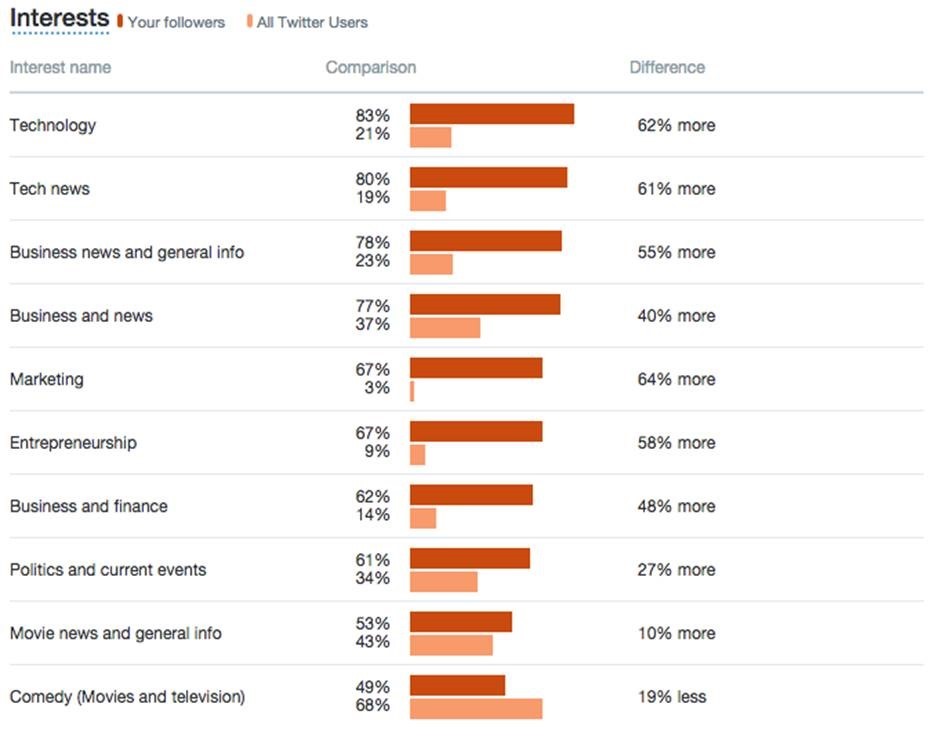 Making accurate personas requires intensive research into the likes, dislikes, interests, and demographics of your target audience, so get ready to dive deep into analytics. Start by using data from your current list of followers for accurate descriptions of the types of people already engaged with your brand. Many social media sites now offer audience analytical data, such as Twitter Business Analytics, which displays specific categories your followers are interested in.