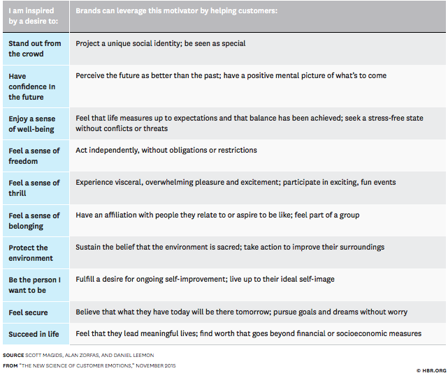 Humans crave understanding and acceptance. That emotional connection carries through to social media marketing. Harvard Business Review conducted and in-depth study and found ten emotional motivators for consumers. These factors are what drive customers to brands to fulfill their needs. In order to develop content that connects with your audience, you must learn their motivations.