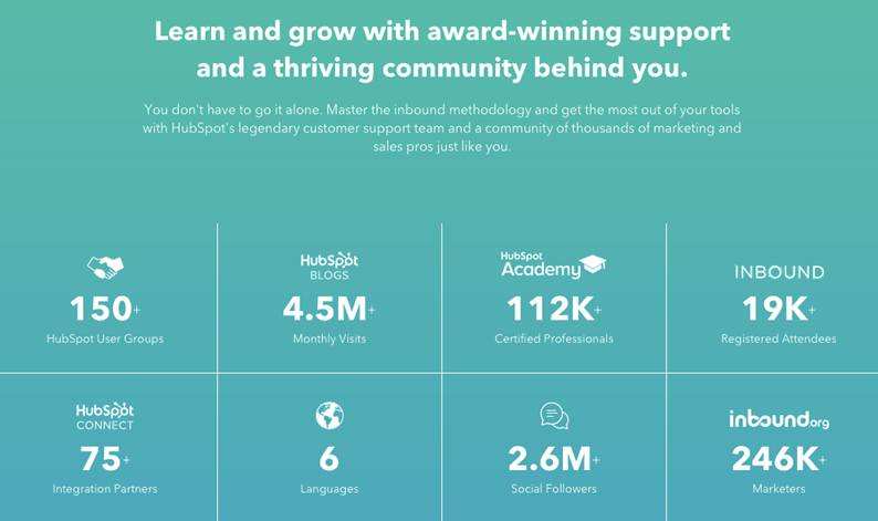 Many brands use this tactic to their advantage by listing impressive numbers or statistics that establish their credibility, like the numbers on HubSpot’s homepage.