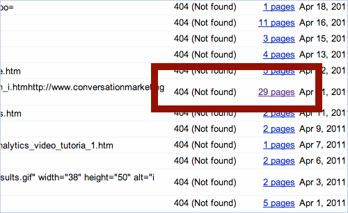 Sample screenshot of crawl errors from Google Webmaster Tools: