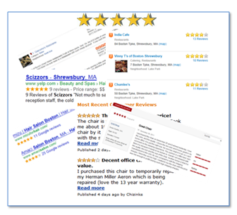 • We recently started using the "Customer Reviews & Testimonials Plugin for WordPress". What's really nice is when someone leaves a review, it is not published on our website until we approve it. Reviews are Microformat enabled (hReview) and after posted will show up in Google's search engine results page.