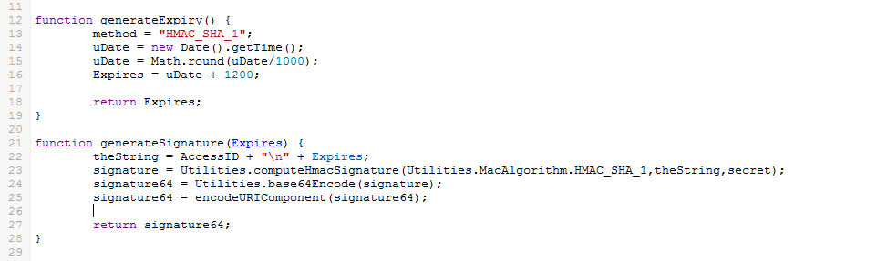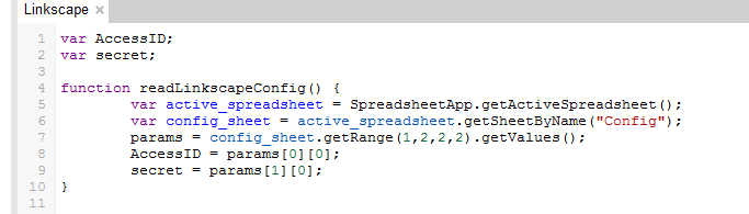 The first section of code (Rows 1-11) processes your Access ID and Secret key for the API to work. It is set up to reference the cells where you input the information (B1 and B2 on the Config Tab).
