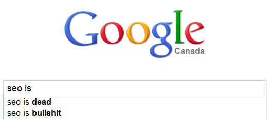 That all we bring to the table is crap is so engrained that Googles autocomplete for SEO is looks like this: